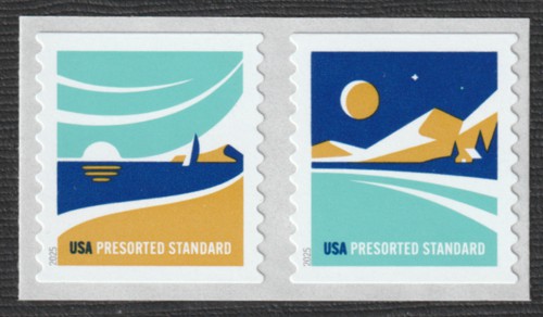 | 5958-9 | American Vistas, two different, stylized beach scene and stylized mountain scene (10¢ Coil, pre-sort standard rate, issued in coils of 3K and 10K) | 2/21/25 |