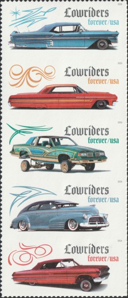 Lowriders (FOREVER/78¢), 5 stamps, issued in panes of 15 (die-cut & imperforate) |