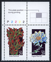 | A "DECK" CARD... (also called "END Card"), is a thin cardboard placed on top of USPS shrink-wrapped bricks of stamp panes & booklets. The deck card provides protection and support for the stack of shrink-wrapped stamp panes during shipping. Pane position diagrams (ppd) show the position of a specific pane as printed on the larger press sheet. That position is important to the printer for quality control. These PPDs appear in the selvage of quite a few U.S. stamp panes. However, for some panes and all booklets, determining the position is impossible because the PPD is either not printed or it is trimmed off when the press sheet is cut into individual panes. ![]() (example of PPD) Beginning in 2005, stamp printer, Ashton Potter USA, began printing a number in the top corner of the Deck cards to designate the relative pane position in the press sheet. As shown by the number 12 on the example Bonsai deck card here >>> This position number is used by the printer for quality control purposes. All of the stamps in a single deck are from the same position of the press sheet. |