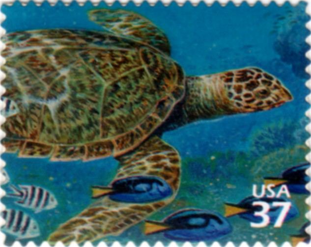 37¢ Hawksbill Turtle, (from Coral Reef, 1/2/04) |