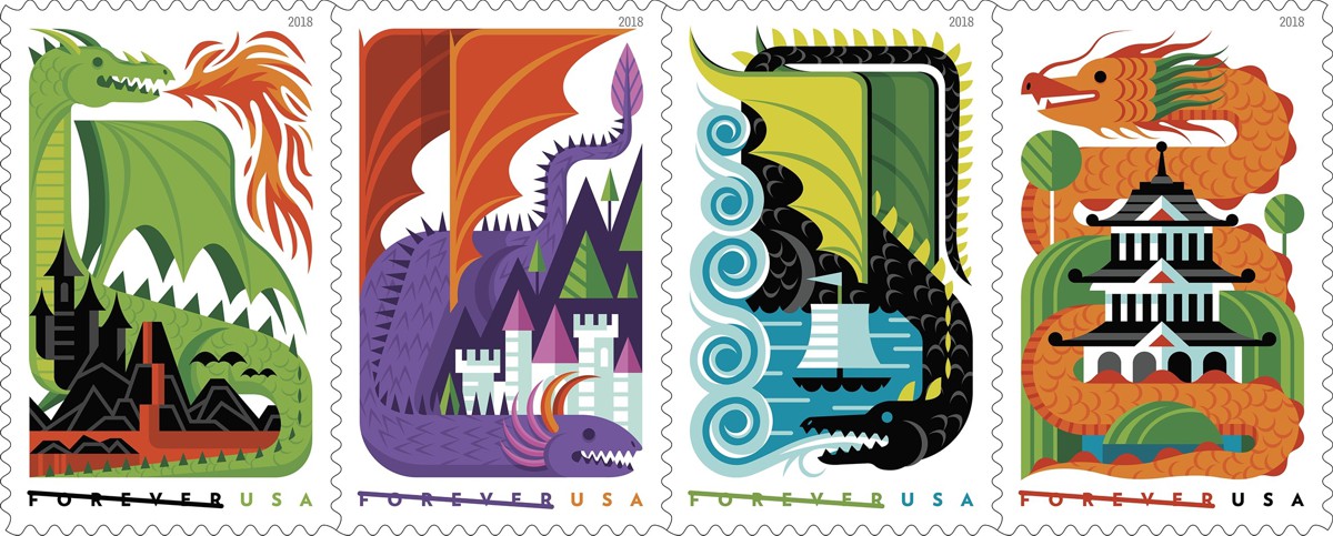 | 5307-10 | Dragons (FOREVER/50¢), 4 different, pane of 16 | 08/09/18 |