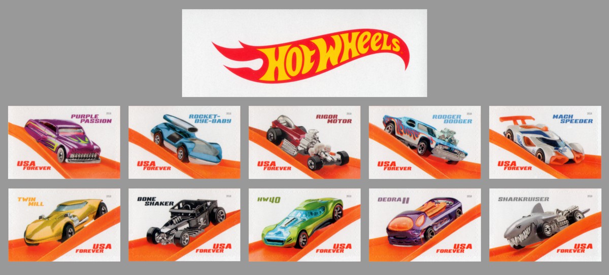 | 5321-30 | Hot Wheels (FOREVER/50¢), 10 different, pane of 20 | 09/29/18 |