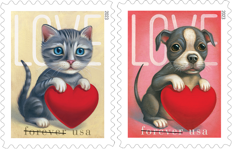 | US | 5746b | Love, Kitten/Puppy, pair (or singles) (Forever/60¢) (1/19/23) | 1.55 |