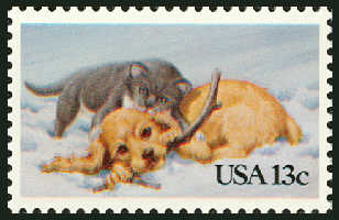 | US | #2025 | 13¢ Kitten & Puppy playing in snow, Xmas '82 | 0.25 |