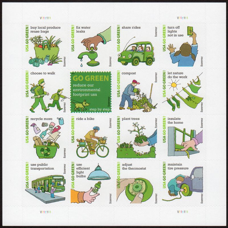 | 4524 | Go Green (FOREVER/44¢) Pane of 16 (04/14/11) Singles Available | ![]() |
