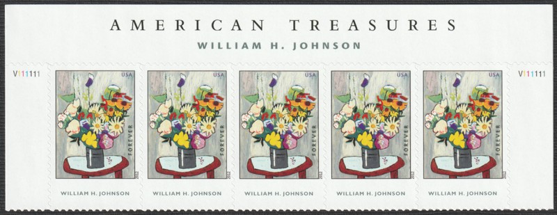 | 4653-strip | William H. Johnson, Top Margin "American Treasures" Strip of 5 | 5.00 | |