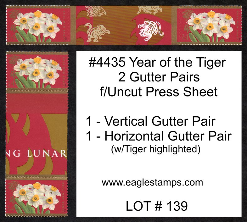 4435gtrs | Yr of the Tiger, Two (2) Gutter Pairs (from uncut press sheet), 1 Horizontal, 1 Vertical | 4.95 |