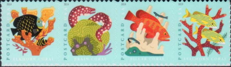 | 5366a | Coral Reefs (FOREVER/35¢), horiz. Strip of 4 from Pane (in Scott catalog sequence, 03/29/19) | 3.10 | |