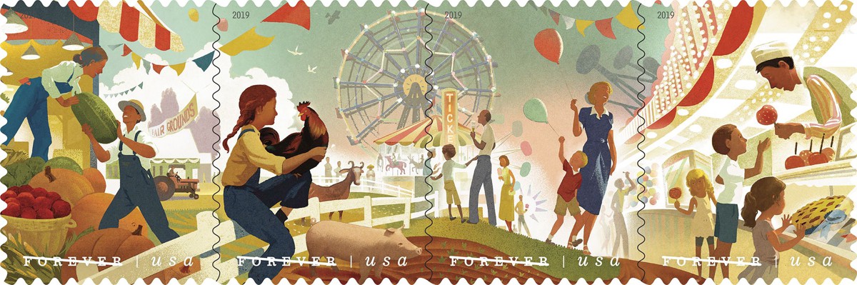 | 5404a | State and County Fairs (FOREVER/55¢), horiz. Strip of 4 (07/25/19, sliced through gutter between strips to preserve full image) | 3.20 | |