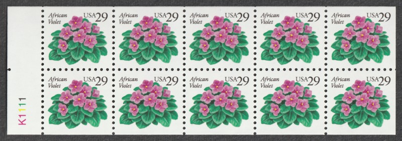 | 2486 | 29¢ African Violet, Single from booklet (6/25/93) | 0.50 | |