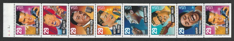 | 2730a-seq | 29¢ Rock 'n Roll, Rhythm & Blues, STRIP of 7 in catalog sequence (begins with Elvis) | 6.50 | |