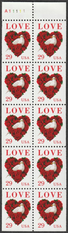 | 2814C | 29¢ Love, Heart-shaped Wreath & Dove f/pane (6/11/94) | 0.55 | |