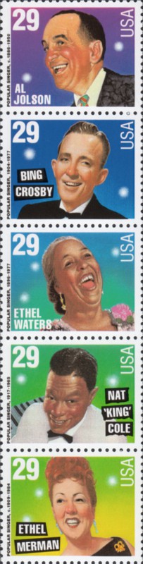 | 2853a | 29¢ Popular Singers, vert. STRIP of 5 (Scott # seq.) (9/1/94) | 4.75 | |