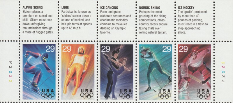 | 2811a | 29¢ Winter Olympics STRIP of 5 (#2807-11) (1/6/94) | 2.60 | |