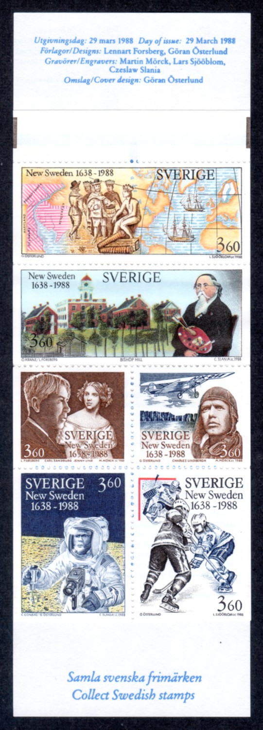 | SWEDEN #1677a | New Sweden, Booklet Pane of 6 diff. commemorating American achievements (one stamp same design as C117) | 7.50 | |